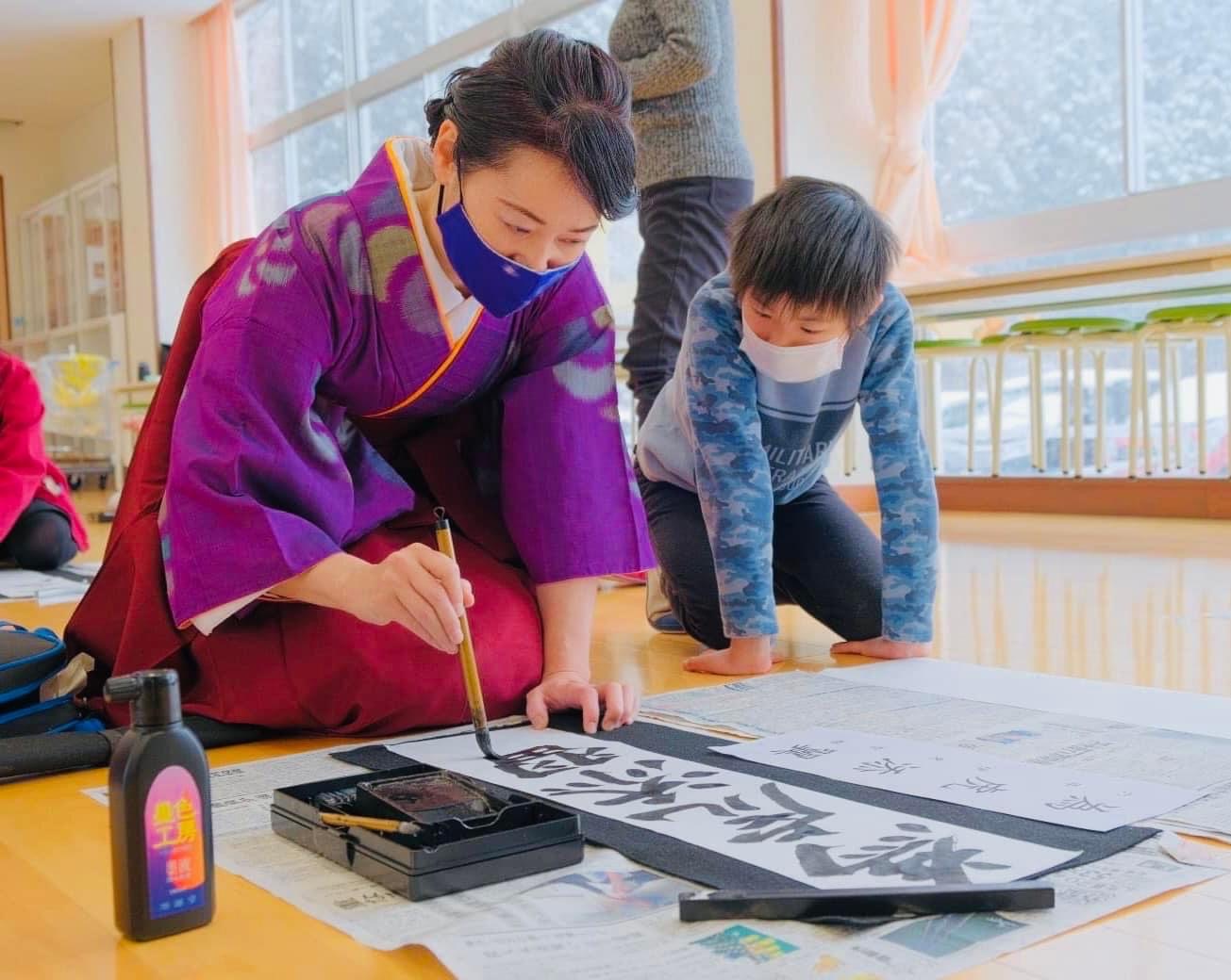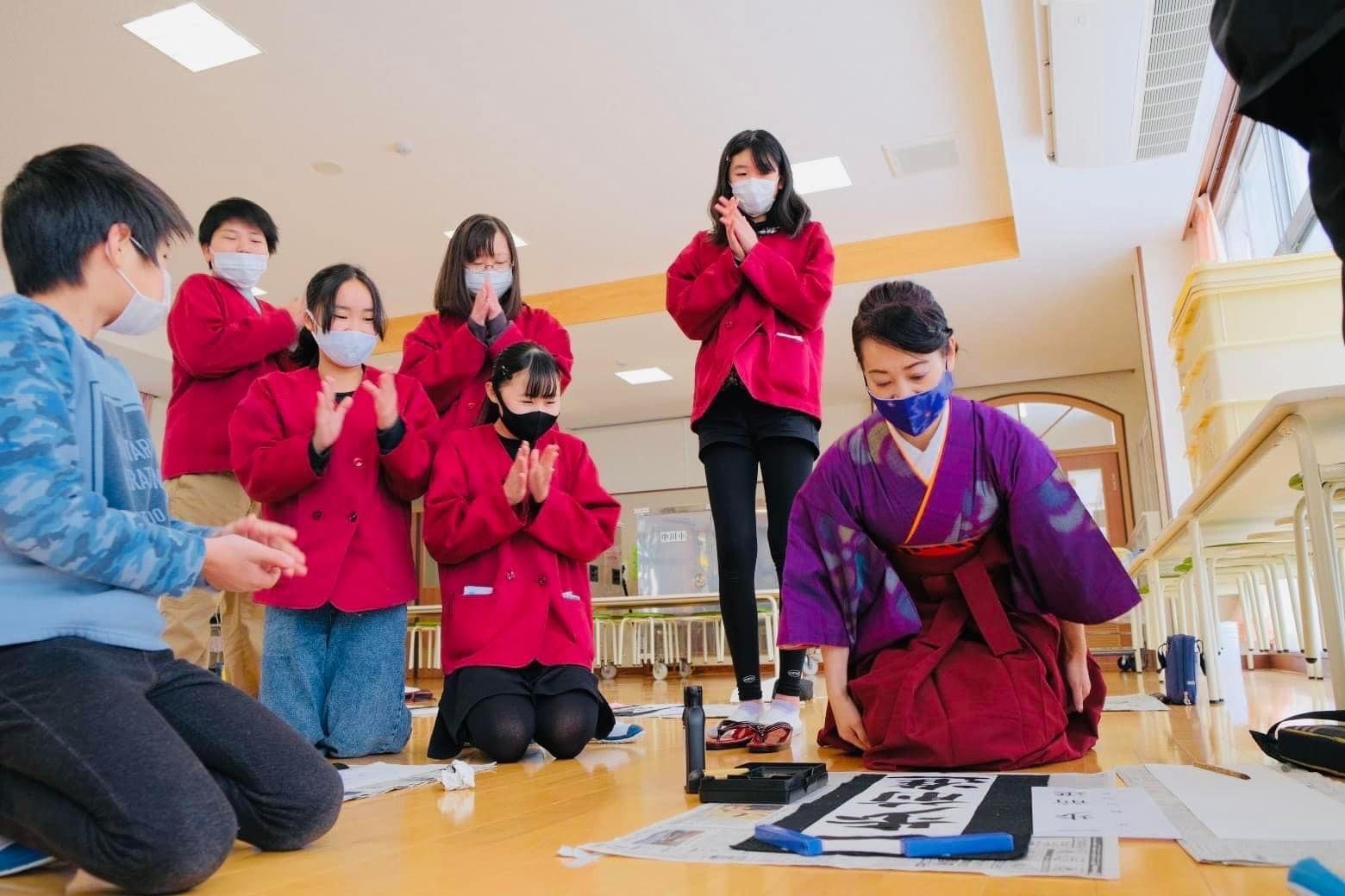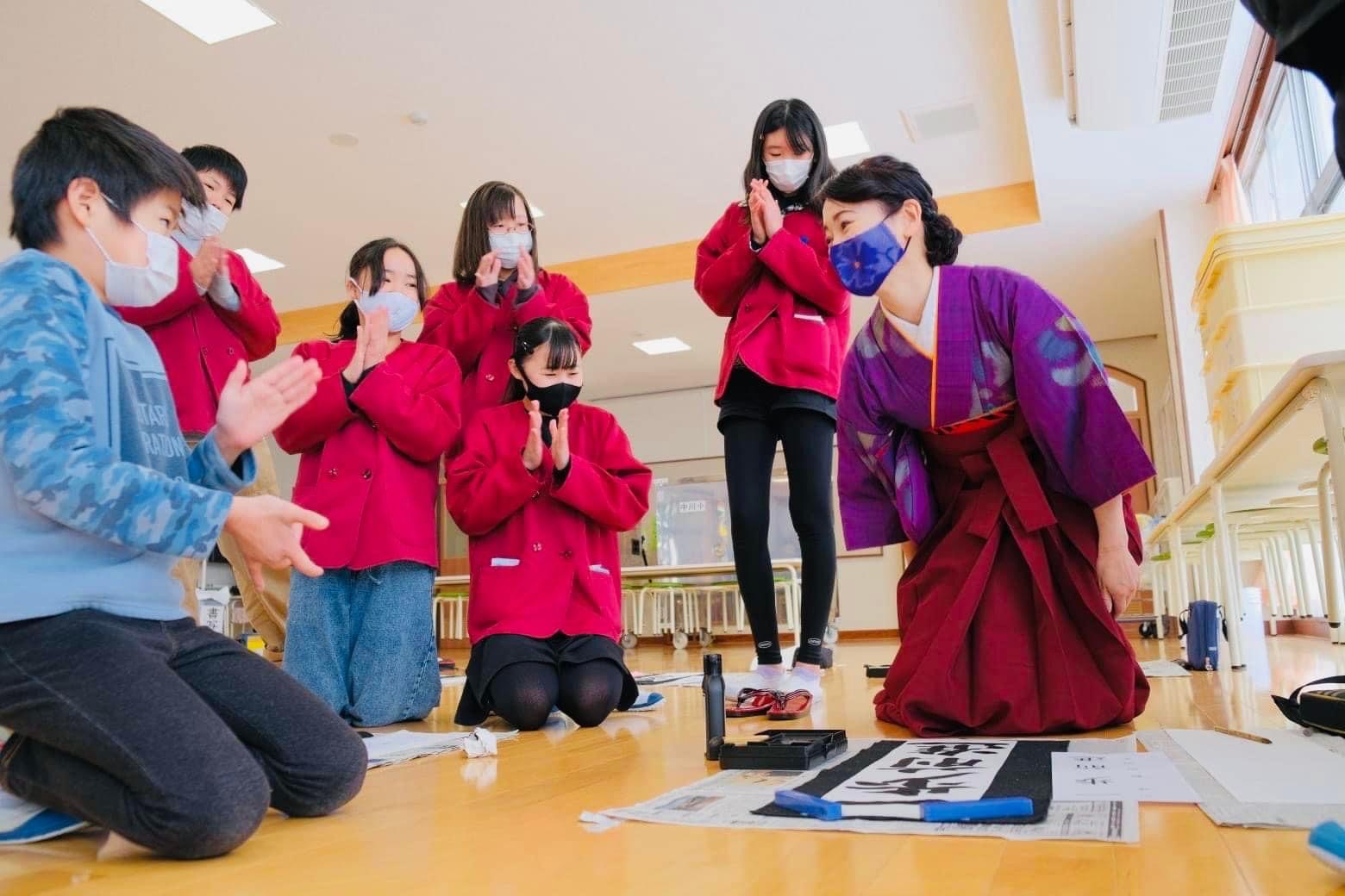 ここに来てコロナ禍となり、距離をあけ全校生徒さん参加型から5、6年生限定となり残念でしたが、廊下でのすれ違い、校庭での雪遊びや一輪車の練習をしながらの『習字の先生〜‼︎ かてい先生こんにちは〜』と、手を振ってもらったり、覚えて頂いている事に感激しました。